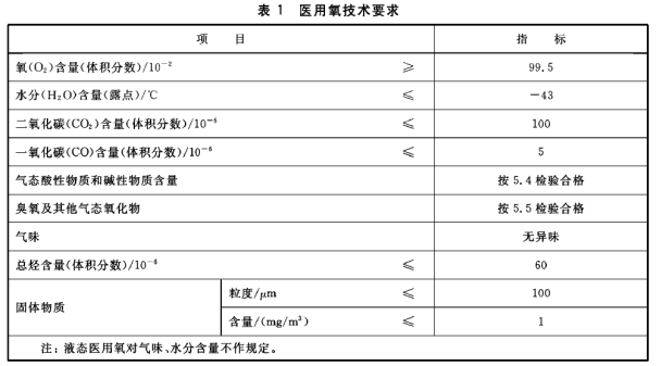 醫(yī)用氧的技術(shù)要求應(yīng)符合表1的規(guī)定。