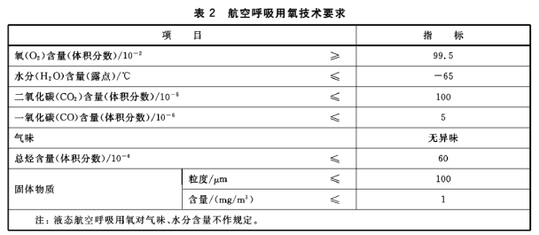 航空呼吸用氧的技術(shù)要求應(yīng)符合表2的規(guī)定。