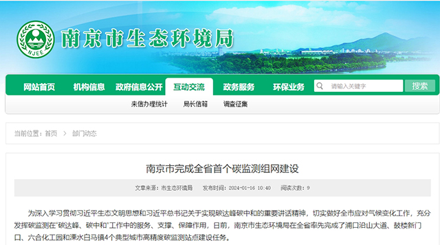 近日,南京生態(tài)環(huán)境局官網(wǎng)官微發(fā)布了關(guān)于南京市完成全省首個碳監(jiān)測網(wǎng)建設(shè)最新進展。南京市生態(tài)環(huán)境局在全省率先完成了浦口沿山大道、鼓樓新門口、六合化工園和溧水白馬鎮(zhèn)4個典型城市高精度碳監(jiān)測站點建設(shè)任務(wù)。