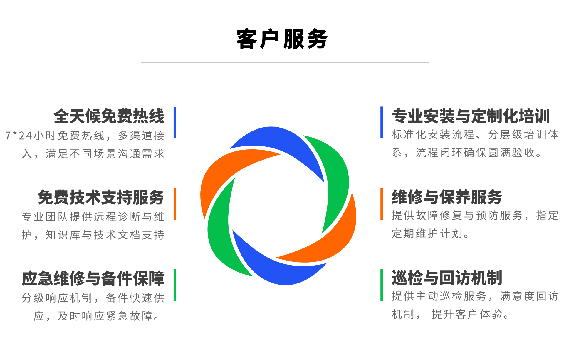 7×24h免費(fèi)服務(wù)熱線,客戶需求,做到15min內(nèi)響應(yīng),2小時(shí)內(nèi)給初步方案,24h內(nèi)趕到現(xiàn)場(chǎng);