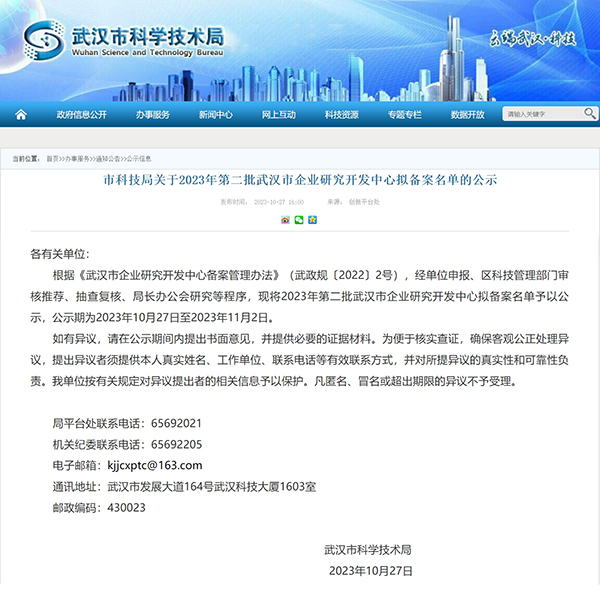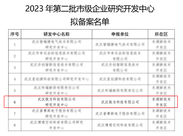經單位申報、區(qū)科技管理部門審核推薦、抽查復核、局長辦公會研究等嚴苛程序,《2023年第二批武漢市企業(yè)研究開發(fā)中心擬備案名單》于近日正式公布,敢為科技入選。